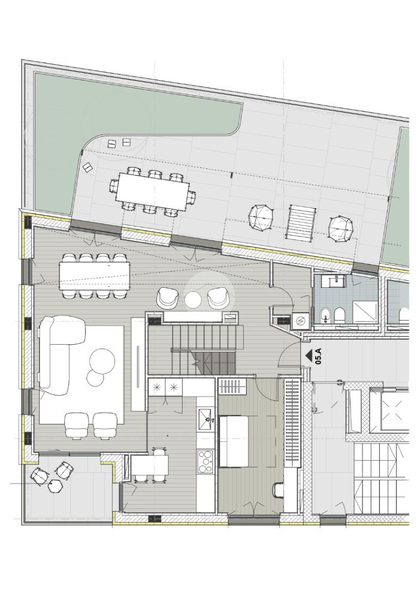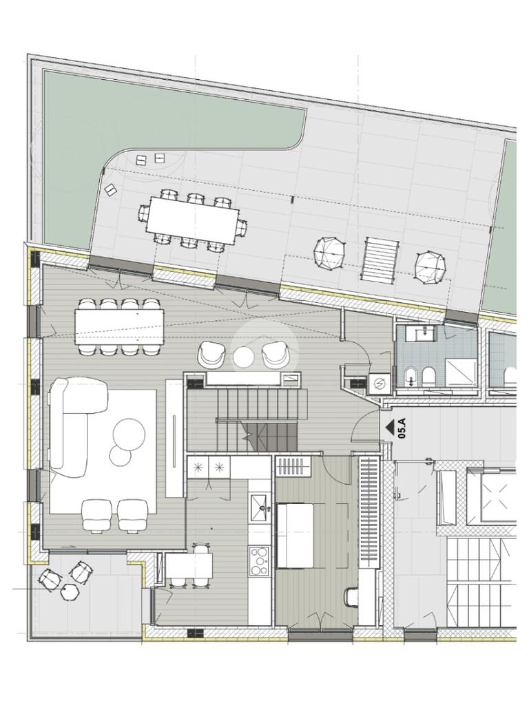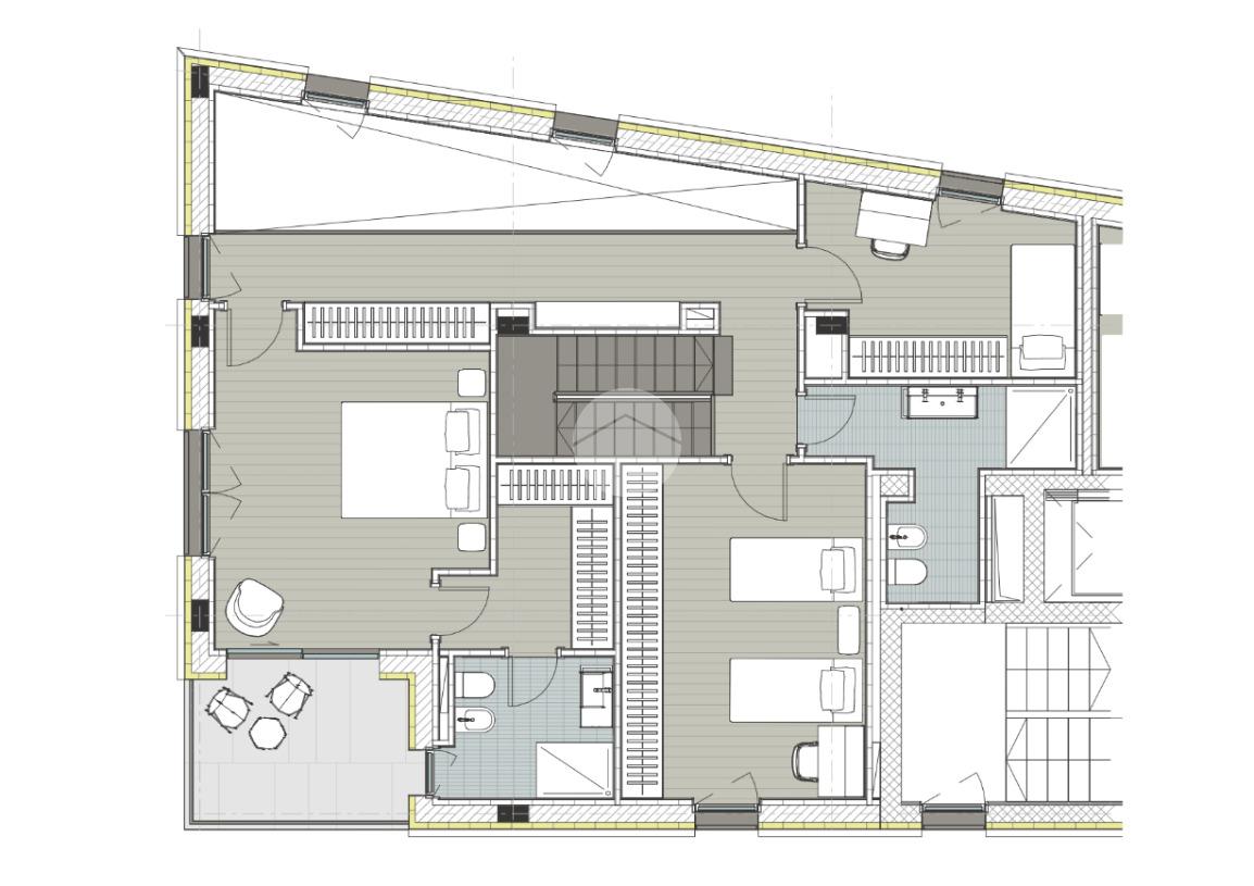 Salendo al sesto piano si accede alla zona notte, composta da due camere singole servite da un bagno spazioso. Completa il piano una grande camera matrimoniale con guardaroba interno, bagno privato con doccia e accesso a un terrazzino esclusivo a servizio della camera.