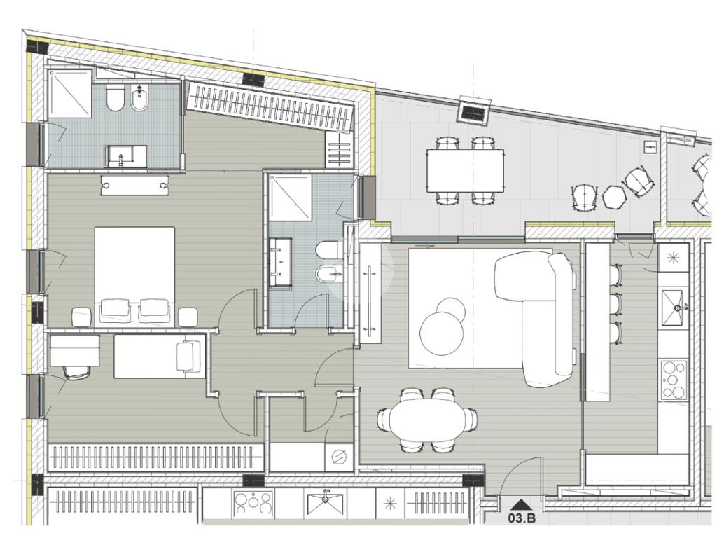 Nello specifico, proponiamo in vendita un ampio trilocale di 116 mq situato al quarto piano. L’ingresso introduce in una luminosa zona living con cucina abitabile, arricchita dall’accesso a un grande terrazzo verandato, perfetto da vivere in ogni stagione. Un comodo disimpegno conduce a una spaziosa lavanderia e a un bagno finestrato con doccia. La zona notte si compone di una camera singola e di una raffinata camera matrimoniale con cabina armadio e bagno en suite.