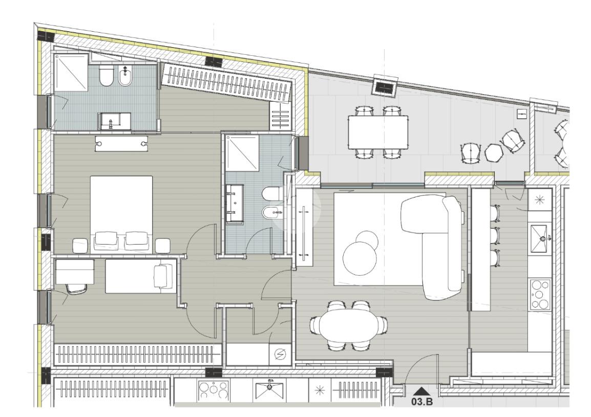 Nello specifico, proponiamo in vendita un ampio trilocale di 116 mq situato al terzo piano. L’ingresso introduce in una luminosa zona living con cucina abitabile, arricchita dall’accesso a un grande terrazzo verandato, perfetto da vivere in ogni stagione. Un comodo disimpegno conduce a una spaziosa lavanderia e a un bagno finestrato con doccia. La zona notte si compone di una camera singola e di una raffinata camera matrimoniale con cabina armadio e bagno en suite.