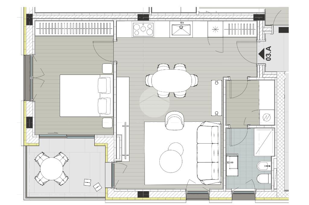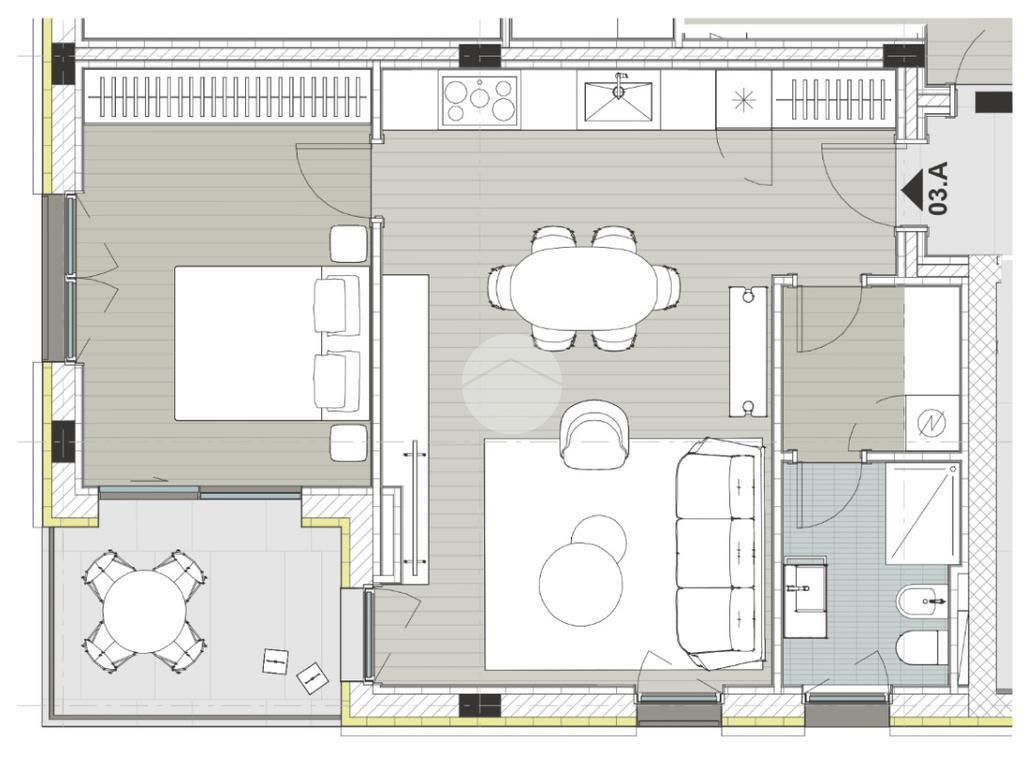Nello specifico, proponiamo in vendita un elegante bilocale di 73 mq situato al terzo piano. L’ingresso si apre su una luminosa e ampia zona living con cucina a vista, affacciata su un comodo terrazzino ideale per momenti di relax. Un pratico disimpegno conduce a una funzionale lavanderia e a un bagno finestrato con doccia. La zona notte è completata da una spaziosa camera matrimoniale con l'accesso diretto sempre al terrazzino.